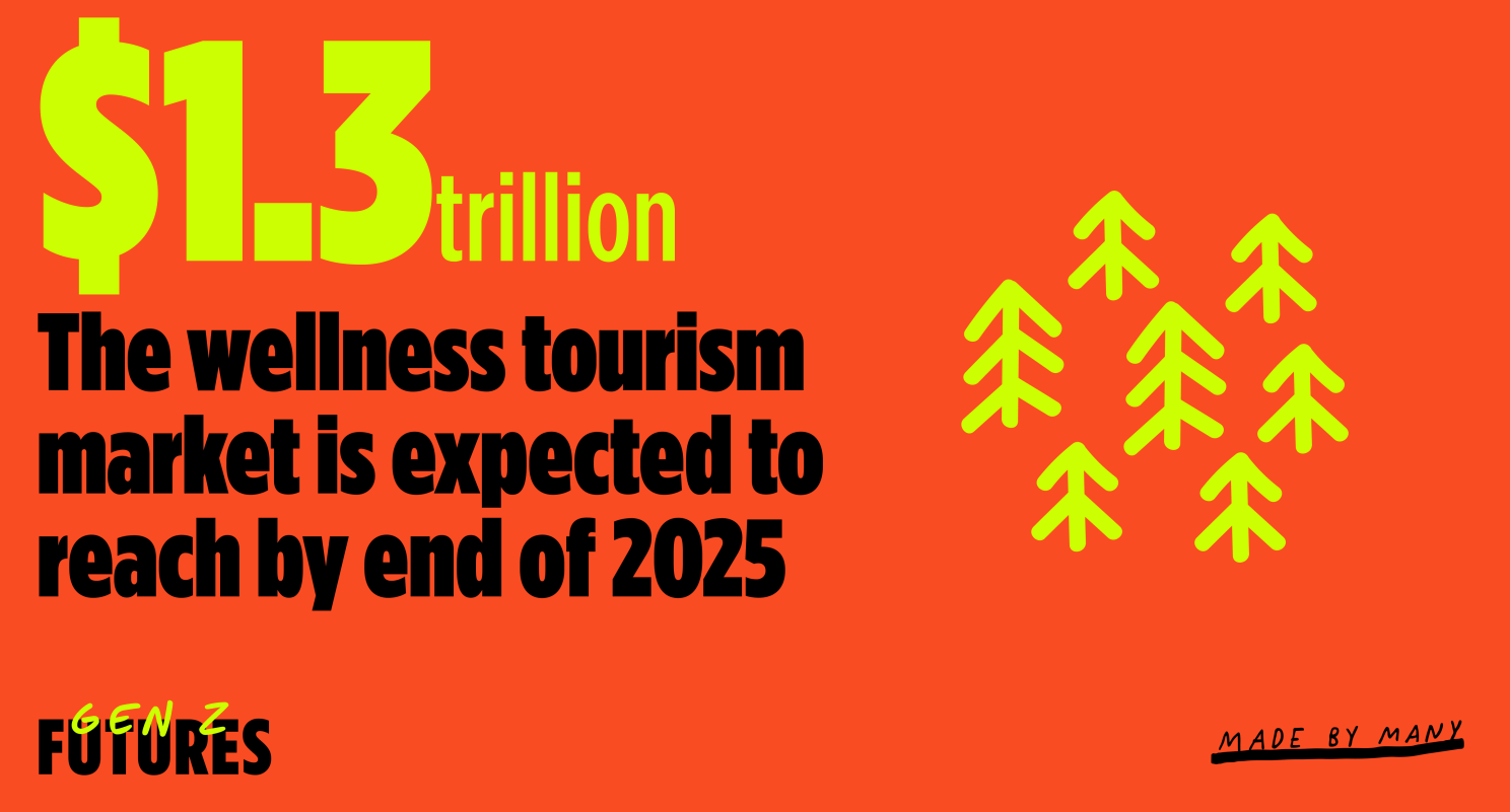 The Wellness tourism market is expected to reach a staggering $1.3 Trillion by the end of 2025. While the definition of leisure is fluid and expanding, we know that 79% of Gen Z consider leisure a priority (American Express). The popularity of Wellness concepts has given rise to innovative hospitality experiences like Selina, which has reimagined the traditional hostel model by integrating co-working spaces, Wellness programming, and community-focused experiences. Similarly, Unyoked has captured Gen Z's desire for digital detox through their minimalist, off-grid cabins, offering an escape from constant connectivity.